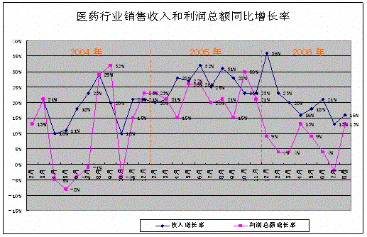 進(jìn)入2006年以來,相繼發(fā)生了一系列涉及醫(yī)藥產(chǎn)業(yè)的重大事件和國家相關(guān)政策調(diào)整,為緩解“看病難、看病貴”國家發(fā)改委繼續(xù)高頻度發(fā)布藥品降價令和國家八部委聯(lián)合在全國范圍內(nèi)掀起打擊藥品購銷中商業(yè)賄賂風(fēng)暴;SFDA頒布對藥品商品名的限制性措施;針對“齊二藥”、“欣弗”和“魚腥草注射液”等藥品安全事件,政府在藥品生產(chǎn)、注冊等領(lǐng)域的監(jiān)管措施也趨于更加嚴(yán)厲;醫(yī)療機(jī)構(gòu)的“掛網(wǎng)招標(biāo)”、“藥房托管”和“政府直接采購”等改革試驗在全國各地相繼展開。大變革、大沖擊、大動蕩是對當(dāng)前中國醫(yī)藥行業(yè)的真實寫照。統(tǒng)計表明,全國醫(yī)藥制造業(yè)銷售與利潤增速雙雙回落,產(chǎn)值增速近20年來首次低于GDP的增長,并利潤一度出現(xiàn)負(fù)增長。