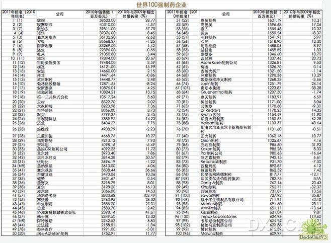 2011全球百強藥企出爐 并購為專利懸崖鋪路