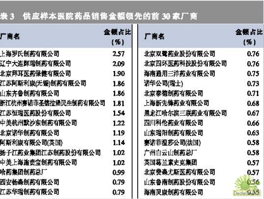 1.供應(yīng)藥品金額領(lǐng)先的生產(chǎn)商