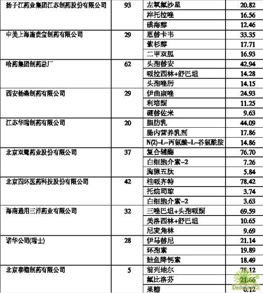 我們特別為山東齊魯制藥有限公司的神經(jīng)節(jié)甙酯、北京四環(huán)醫(yī)藥科技股份有限公司的桂哌齊特、北京雙鷺?biāo)帢I(yè)股份有限公司的復(fù)合輔酶、北京泰德制藥有限公司的前列地爾、海南通用三洋藥業(yè)有限公的司三唑巴坦+頭孢哌酮等品種感到驕傲。這些單一品種的銷(xiāo)售金額已占醫(yī)院購(gòu)入藥品總金額的0.5%份額之多了,這些看家品種將有助于這些企業(yè)更上一層樓。