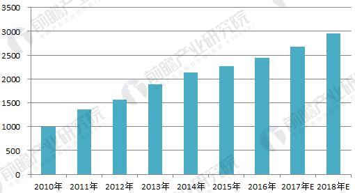 圖表1:2010-2018年我國醫療器械行業市場規模情況及預測(單位:億元)