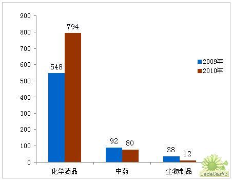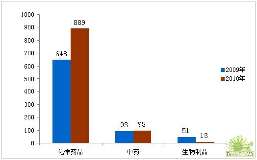 與2009年相比,2010年批準進入臨床研究的化學藥品和生物制品均有所增加,批準進入臨床研究的藥物總數也有所增加。