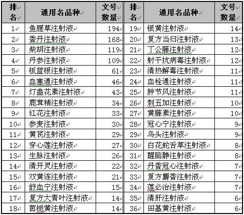 2、主要通用名品種中藥注射劑文號(hào)數(shù)(點(diǎn)擊圖片打開、在點(diǎn)擊打開的圖片放大):