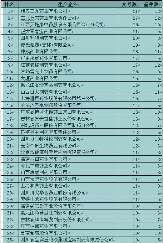 3、擁有較多中藥注射劑文號(hào)的生產(chǎn)企業(yè)及其擁有中藥注射劑文號(hào)數(shù)(點(diǎn)擊圖片打開、在點(diǎn)擊打開的圖片放大):